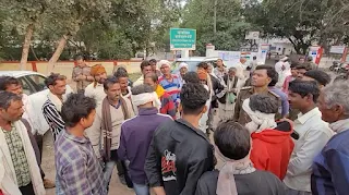 कहा नौगांव पुलिस ने बिना कार्यवाही के थाने से भगाया। परिजनों ने छतरपुर आकर कलेक्ट्रेट के सामने शव रकगकर लगाया जाम, सिटी कोतवाली थाना प्रभारी मौके पर मौजूद।